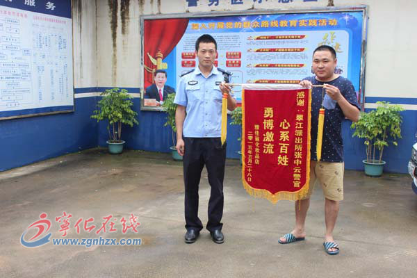 ??? “張警官,我們終于找到你了!多虧了你,不然我們店里10多萬的貨就被洪水沖走了?!?5月28日,寧化縣城區(qū)北大街雅佳麗化妝品店的店主曾樹生來到翠江派出所,將一面“心系百姓,勇博激流”的錦旗送給民警張中云。
