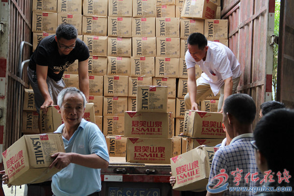 6月1日,兩輛載滿三明市食品行業商會愛心賑災物質的大貨車來到寧化治平、曹坊災區。這批物質由三明市食品行業商會、三明市明商商城、三明市鄭家鋪子商貿有限公司、三明市宏晟貿易有限公司等16家企業愛心人士捐助。有礦泉水、面干、掛面、八寶粥、伊利優酸乳、雞精、醬菜、椰汁、歸化紅等物質,總價值105666元。