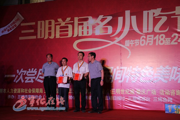 ??? 6月24日,三明舉行首屆名小吃節(jié)文藝晚會,現(xiàn)場向74名(人次)獲小吃美食展參評獎的選手進行頒獎,寧化小吃業(yè)主榜上有名,寧化金山酒家廚師邱德雄制作的白玉豆腐餃獲小吃類金獎,他同時榮獲小吃制作能手及五一勞動獎章,寧化小吃辦獲優(yōu)秀組織獎。