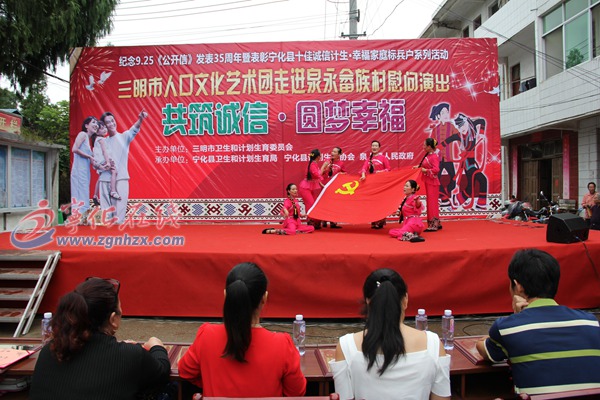 ??? 演出在精彩歌舞《紅色記憶》中拉開序幕。相聲《醫(yī)改就是好》,用幽默詼諧的語言,生動(dòng)展示了近年來三明醫(yī)改取得的成就以及給百姓帶來的實(shí)惠。音樂快板劇《健康優(yōu)生?幸福一生》,巧妙地融入計(jì)生知識和計(jì)生政策,寓教于樂,通俗易懂。來自泉下小學(xué)的孩子們到場表演少兒舞蹈《中國范兒》。《愛在誠信》、《祝你平安》、《和諧大家庭》、《看病》、《嘮嗑》等節(jié)目,精彩紛呈,高潮迭起,不時(shí)博得觀眾陣陣掌聲。三明市人口文化藝術(shù)團(tuán)團(tuán)長李海穎聲情并茂地演唱了《父老鄉(xiāng)親》、《青藏高原》等歌曲,她完美、精湛的演唱技藝,再次點(diǎn)燃了觀眾的激情,將演出一次次推向高潮。演出在小合唱《我們的生活充滿陽光》中緩緩地落下帷幕。