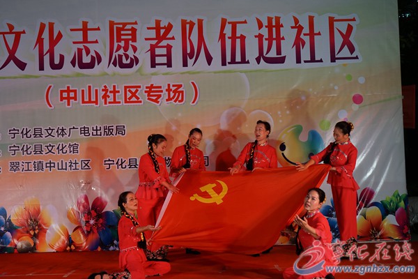 ??? 9月28日晚,由寧化文體廣電出版局主辦、縣文化館承辦的寧化文化志愿者進社區(中山社區專場)活動在翠江明珠小區廣場舉行,簡易的設備、接地氣的表演吸引了數百名社區居民駐足觀看。