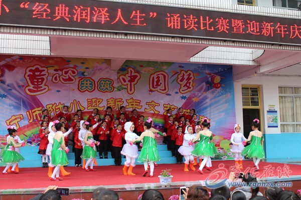 ??? 上月31日下午,寧化師范附屬小學舉行了“唱經典、迎新年”誦讀歌詠比賽,為和諧幸福校園獻上了一份濃濃的新年祝福。