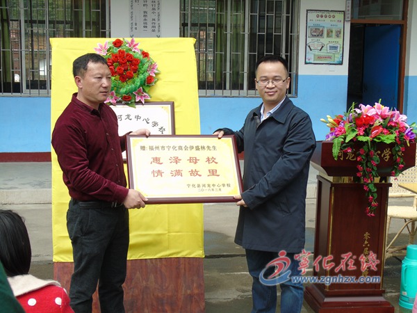 作為學校94屆優秀校友,伊盛林現場回顧了當年在母校求學時的美好時光,對母校日新月異的變化感到欣慰。他勉勵同學們努力學習,以便更好地回報社會。教育局相關負責人對伊盛林關心家鄉教育事業的義舉表示感謝,希望他能常回來看看。在師生熱烈的掌聲中,河龍中心學校“盛林助學獎教基金會”正式揭牌,學校負責人現場向伊盛林先生贈送“惠澤母校,情滿故里”牌匾。