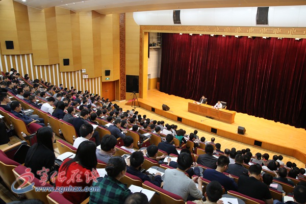 ??? 4月8日下午,寧化縣在世界客屬文化交流中心學術報告廳舉辦換屆選舉專題教育黨課,縣委書記余建地授課。