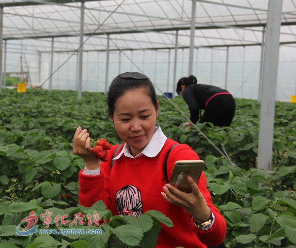 ??? 寧化在線在翠江論壇、微信公眾號向網友發起周末摘草莓活動,不到半天,數十個免費采摘名額就被網友搶占一空。當日上午,網友們一起乘坐大巴前往目的地,一下車,大家就迫不及待的拿著籃子往草莓種植大棚走去。大棚里一排排草莓長勢喜人,一顆顆紅彤彤的草莓在綠葉映襯下分外惹眼。網友們個個穿梭在草莓地里,彎腰認真尋找最漂亮的草莓,不時拿起手機、相機拍照并上傳微信朋友圈與親人朋友分享這一刻快樂。