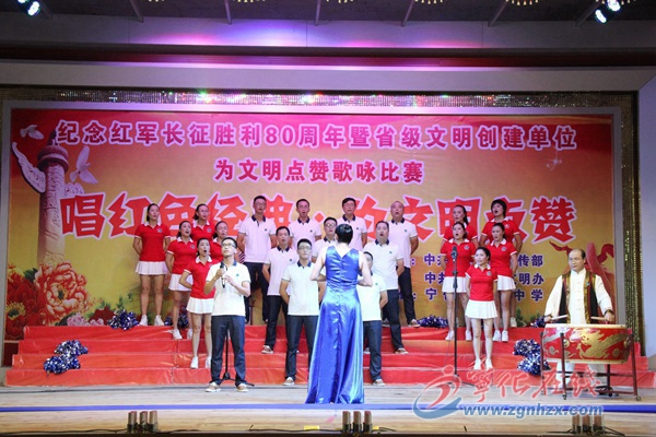 ? ? “為文明點贊,為三明點贊,三明人民勤勞勇敢;為三明點贊,為文明點贊,精神文明永放光芒……”6月30日下午,寧化六中禮堂內歌聲嘹亮、激情飛揚。紀念紅軍長征勝利80周年暨省級文明創建單位“唱紅色經典 為文明點贊”歌詠比賽在這里舉行,全縣16支參賽代表隊的300余名干部職工登臺演唱。