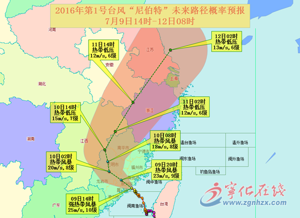 ??? 今年1號臺風“尼伯特”于9日3時減弱為熱帶低壓,5時中心位于北緯26.1度、東經116.5度(寧化縣境內),中心氣壓997百帕,中心附近最大風力7級(16米/秒,熱帶低壓級)。受它影響,8日夜間到10日06時寧化出現(xiàn)暴雨到大暴雨,統(tǒng)計9日08時至10日08時全縣共有17個雨量站雨量≥50毫米,2個雨量站雨量≥100毫米,分別為安樂113.0毫米,橋下水庫109.5毫米。未來“尼伯特”以每小時10公里左右的速度向西北偏北方向移動,強度逐漸減弱,進入江西。