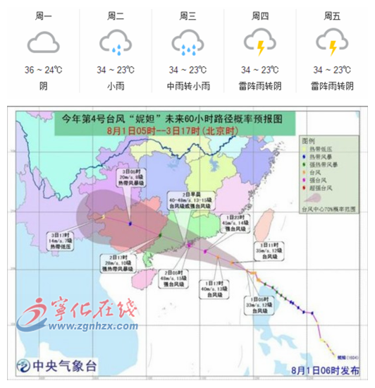 對寧化人而言,“妮妲”的“功勞”在于令寧化連續多日的高溫有所改善,但是“妮妲”也帶來了大量的降雨。受臺風外圍云系和降水的影響,全縣氣溫會有一個明顯的下降。寧化縣氣象臺也于8月1日10時35分解除高溫橙色預警信號。荼毒寧化人已久的 “超長待機版” 高溫終于暫時暫停!氣象局提醒,未來一周多雷陣雨天氣,請注意防范局地強雷電、短時強降水和雷雨大風等強對流天氣的不利影響。