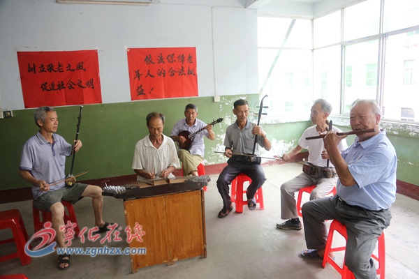 ??? 寧化縣泉上鎮距縣城35公里,現有132個村民小組2.3萬人口。2008年9月,寧化泉上鎮老人長壽協會成立老年樂隊,現有固定會員16名,平均年齡68歲,最大年齡80歲,會員均來自當地各村莊,有退休干部、個體戶,更多的是農民,共同的音樂愛好讓他們聚在一起。《采茶曲》《十送紅軍》《感恩共產黨》……老人們自帶二胡、板胡、揚琴、秦琴、笛子等樂器,經常利用出山趕集的機會聚在一起,互相學習與交流。