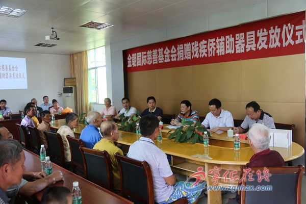 ??? 8月17日,金朝國際慈善基金會捐贈殘疾僑輔助器具發放儀式在寧化泉上華僑農場舉行,現場為殘疾僑發放總價值20多萬元的輪椅5張、助聽器24臺等輔助器具。省僑聯權益保障部調研員王富良、市僑聯主席關文良、縣領導蘭其鋒及縣僑聯負責人參加發放儀式。