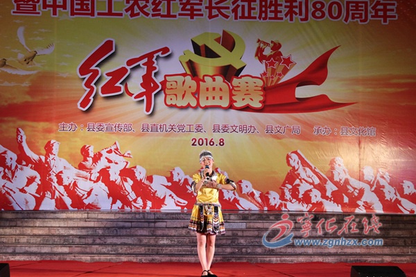 ??? “萬泉河水清又清,我編斗笠送紅軍……”中沙鄉黨委選送的參賽歌手陰以富一首經典紅歌《萬泉河水清又清》拉開了比賽序幕。來自縣教育局黨委的選手張杰林激情演唱的《追尋》拉動了現場氣氛。縣政府直屬機關黨委選送的歌手李林蔚以一首《情深誼長》將現場觀眾帶進了對革命先烈輝煌歷程的緬懷。來自縣林業局黨委的羅春備選手以一首鏗鏘有力的《紅旗飄飄》將現場氣氛推向高潮。《映山紅》、《紅軍來過我家鄉》、《紅梅贊》、《紅星照耀我去戰斗》、《四渡赤水出奇兵》等10多首耳熟能詳的紅軍歌曲謳歌了中國共產黨95年的風雨歷程、95年的豐功偉績。觀眾們時而鼓掌喝彩,時而揮手合唱,蕩氣回腸的紅歌旋律震撼著在場每一個的心靈,同時激勵著全縣干群奮力爭先,為建設富美新寧化作出更大的努力和貢獻。