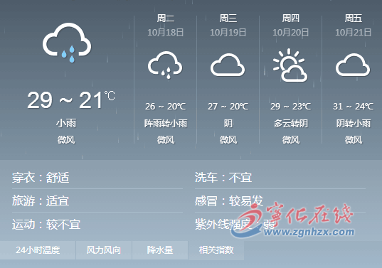 具體預報如下,18日:多云到陰,有小雨,氣溫21-26℃;19日:小雨轉陰到多云,氣溫20-27℃;20日:陰到多云,氣溫20-29℃;21日:多云轉陰,氣溫23-31℃;22-23日:陰有中到大雨,氣溫20-26℃;24日:陰到多云,氣溫18-23℃。(羅鳴 羅鳳蘭)