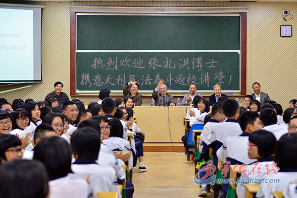 ??? 伊爾蒂教授的講座別開(kāi)生面,整個(gè)過(guò)程均以對(duì)話(huà)的形式呈現(xiàn)。在張禮洪教授的流暢翻譯下,伊教授與同學(xué)們的交流并沒(méi)有什么障礙。他首先表達(dá)了對(duì)該校同學(xué)統(tǒng)一著裝、青春蓬勃的中學(xué)生形象的喜愛(ài)之情。接著,他向在場(chǎng)的同學(xué)提了幾個(gè)他關(guān)心的問(wèn)題,如同學(xué)們所學(xué)科目,以后想要從事的職業(yè)等。了解完同學(xué)們的情況后,即是同學(xué)們向伊爾蒂教授提問(wèn)了。同學(xué)們非常珍惜這個(gè)難得的機(jī)會(huì),積極踴躍地走上講臺(tái)向伊爾蒂教授提了自己關(guān)心的問(wèn)題。同學(xué)們的問(wèn)題大都涉及個(gè)人成長(zhǎng)問(wèn)題:如您年輕時(shí)的求學(xué)經(jīng)歷?當(dāng)您被全世界否認(rèn)、孤立時(shí),您是怎么面對(duì)的?伊爾蒂教授回顧了自己的高中求學(xué)經(jīng)歷,并對(duì)中國(guó)和意大利的教育情況做了對(duì)比,引導(dǎo)同學(xué)們了解中意教育的不同,幫助同學(xué)們樹(shù)立正確的認(rèn)識(shí)觀(guān)、挫折觀(guān)、成才觀(guān);同學(xué)們還提出了一些高大上的問(wèn)題:如您怎么看待人類(lèi)的不平等?您如何理解中國(guó)“核心價(jià)值觀(guān)”中的“自由、平等、公正、法制”的內(nèi)涵?伊爾蒂教授引導(dǎo)同學(xué)們從國(guó)家層面去看待社會(huì)存在的問(wèn)題,心胸要開(kāi)闊,把個(gè)人前途與國(guó)家命運(yùn)聯(lián)系在一起。
