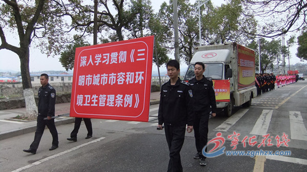 ??? 《三明市城市市容和環(huán)境衛(wèi)生管理?xiàng)l例》(以下簡(jiǎn)稱(chēng)《條例》)于今日起正式施行。為讓廣大市民了解這部與我們生活息息相關(guān)的《條例》,2月27日,寧化縣行政執(zhí)法局圍繞“強(qiáng)化條例思維,堅(jiān)持依法治城”主題,組織開(kāi)展大型踩街活動(dòng),掀起《條例》宣傳熱潮。