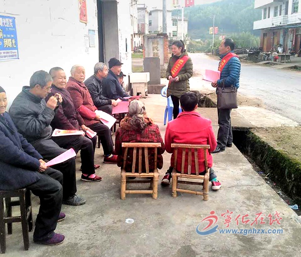 ? ? “鄉(xiāng)親們,大家好!這次我們來主要是向你們宣傳黨的十九大精神。”這是11月27日上午,該鄉(xiāng)宣講團(tuán)組長(zhǎng)饒秀蘭在深入馬源村群眾家門口宣講黨的十九大精神時(shí)的一段開場(chǎng)話,宣講場(chǎng)地由十來張凳椅簡(jiǎn)易圍成,宣講團(tuán)成員給群眾們分發(fā)關(guān)于黨的十九大報(bào)告宣傳資料,并揀著重點(diǎn)內(nèi)容解讀給他們聽。當(dāng)宣講團(tuán)成員講到“二輪土地承包到期后,再延長(zhǎng)三十年,這讓老百姓得到了實(shí)惠……”時(shí),鄉(xiāng)親們都鼓掌稱好。