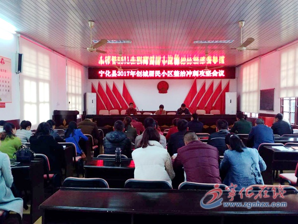 為打好創建省級文明縣城總評沖刺攻堅戰,進一步落實居民小區整治目標任務,強化工作責任,12月1日,寧化縣2017年創城居民小區整治沖刺攻堅會議在翠江鎮二樓會議室召開??h人大常委會副主任張如梅,縣政協副處級干部江正根出席會議。