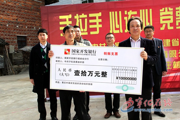 ??? 捐助儀式上,國家開發銀行福建省分行向黃莊村捐助了十萬元的專項黨費,中非發展基金有限公司捐助了五萬元的專項黨費,用于加強黃莊村村級服務場所的建設。