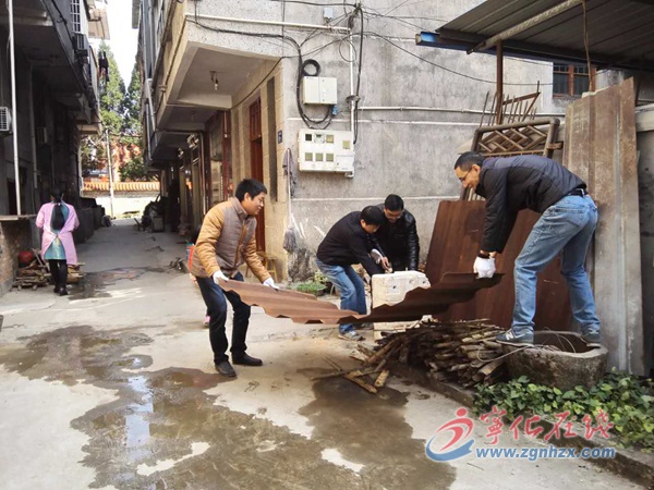 ? ? 干部職工深入社區(qū)對房前屋后堆放的柴火、廢舊物品等雜物進(jìn)行清理,在整個勞動過程中,大家充分發(fā)揚(yáng)了不怕臟累、團(tuán)結(jié)協(xié)作的精神,對整治區(qū)域分片包干,不留死角、不留盲區(qū),全方位的清理了社區(qū)環(huán)境。