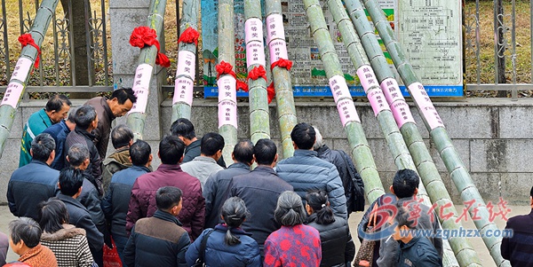 ? ? 當日正逢安樂鎮圩日,不少游客和當地村民圍聚在鎮政府門口,很是熱鬧。走近一看,只見一根根大海碗粗的竹子斜靠在矮墻邊,竹子上貼著獲獎名次。本屆筍竹文化節,安樂鎮各村共推薦25根竹子參賽。最終,一根周長53.4cm的竹子脫穎而出,被評為“竹王”,一等獎被黃莊村村民藍永添收入囊中。群眾們爭相上前觀看“竹王”,紛紛拿出手機與“竹王”合影留念。活動現場還擺放了當地多家筍竹加工企業的展銷柜臺,上面展示著飯鏟、竹砧板、竹工藝品、筍竹食品以及生物機制碳等許多筍竹相關產品,吸引了不少游客駐足詢問、購買。