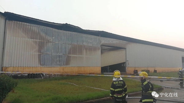 圖為寧化聯譽泡沫制品有限公司火情撲滅后現場