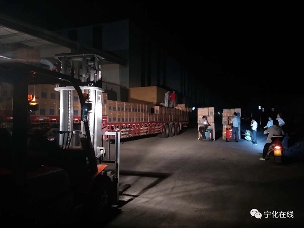圖為寧化月兔科技有限公司工人正在連夜發貨