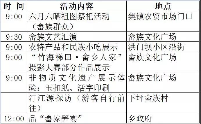 活動一:六月六曬祖圖祭祀活動(畬族群眾 地點:集鎮農貿市場門口)