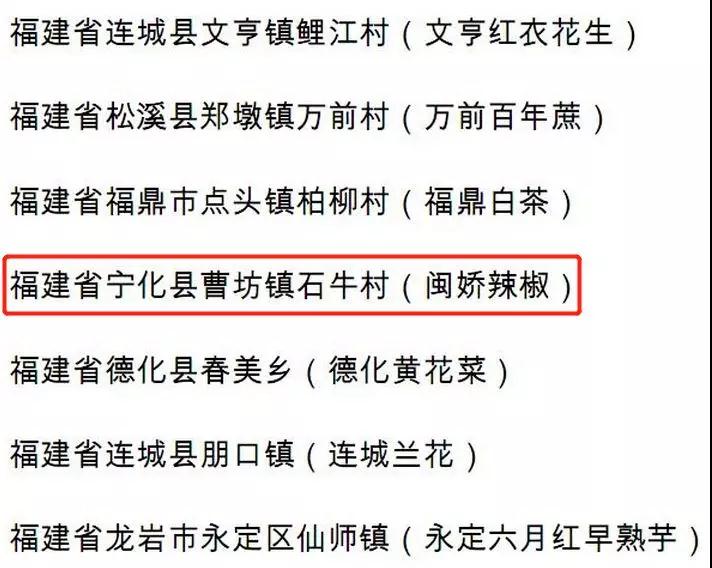 第八批全國一村一品示范村鎮(zhèn)名單(福建)