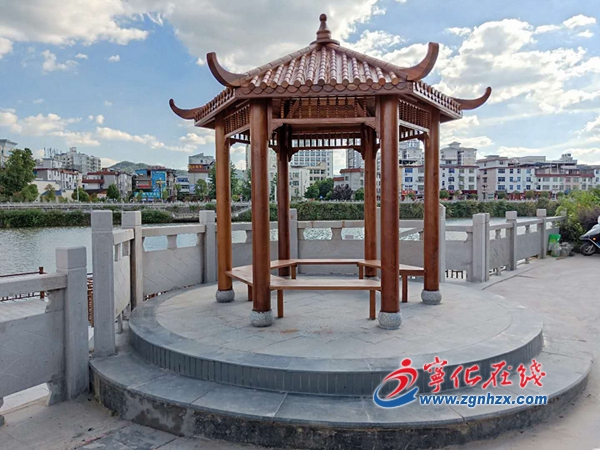 ? ? 原江濱親水平臺上的景觀亭名為“兿苑亭”,建于2011年,為寧化縣總工會離退休老同志江鈴鏢出資捐建。原江濱親水平臺建設采用木質地板和護欄,常年遭風吹日曬及經歷洪水浸泡,已不能正常使用。