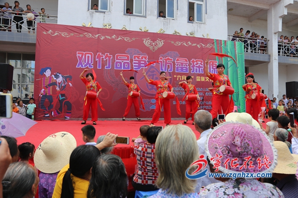 ? ? 彩旗飄飄,歌聲飛揚。上午9時許,獨具特色的畬族文藝匯演在大型歌舞《美麗畬鄉等你來》中拉開帷幕。畬鄉民樂演奏《非遺文藝》、小品表演《回畬鄉娘家》、民間小調《十二贊汀江源頭下坪村》、民間小劇《賣花線》等節目精彩紛呈,極具畬族風情,博得臺下陣陣掌聲。隨著熱烈歡快的節奏,民族學校學生紛紛上場,表演輕快的《竹竿舞》,在竹竿中躍動舞蹈,臺下一片歡騰。演出在治平畬族民間藝術團表演的《山里人活得最瀟灑》中緩緩落幕。