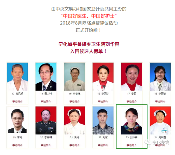 寧化劉華容入圍中國好護士候選人名單,快為她點贊!