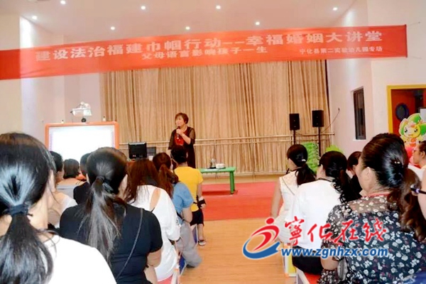 ? ? 為持續深化“建設法治福建巾幗行動”,加強寧化縣家庭教育水平,寧化縣婦聯分別于9月21日下午和晚上在客屬文化交流中心、寧化縣第二實驗幼兒園舉辦“建設法治福建巾幗行動——幸福婚姻大講堂”家教講座,200余名家長前來聽講。