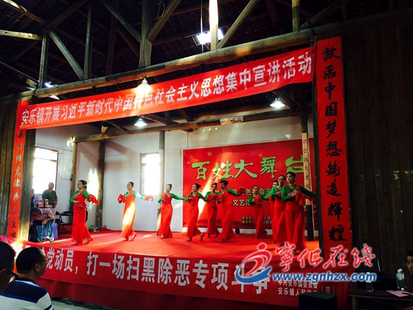? ? 活動現場精彩紛呈,先由寧化業余宣講團成員張啟才以“邁進新時代,開啟新征程”為主題,帶領安樂百姓共同學習習近平新時代中國特色社會主義思想,講述了其時代背景、歷史意義、核心要義、豐富內涵、理論特色和實踐要求,利用通俗易懂的語言把“不忘初心、牢記使命”等精神傳達到每個人的心中。講師講得起勁,聽眾聽得入神。隨后,舞蹈隊表演了舞蹈《十送紅軍》、退休職工干部演唱了《唱支山歌給黨聽》歌曲、鎮干部表演了三句半《移風易俗新篇》、安樂教師朗誦詩歌《華夏崛起創輝煌》等,精彩的11個特色節目把活動氣氛推向高潮。