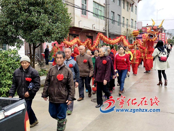 ? ? 寧化縣湖村鎮舉行2018年重陽節祝壽慶典大會暨踩街活動,并為20位六十歲以上逢十壽星和3位敬老之星戴紅花、發放紅包。(謝望龍 方碧清)