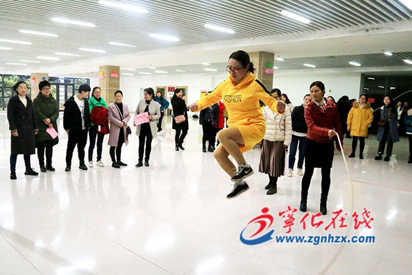 ? ? 活動設有猜迷語、跳大繩、你比我猜、插秧收割接力等項目,趣味十足。女職工們分成七個小組參加各項活動,隊員之間互相協作,配合默契,玩得不亦樂乎,歡聲笑語充滿整個大廳。