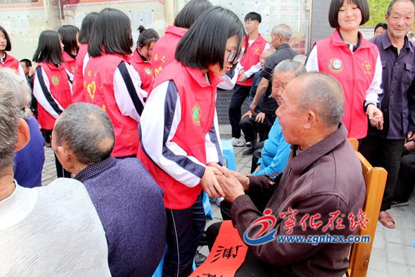 ? ? 志愿者們為老人們表演架子鼓、吉他彈唱《父親》、合唱紅軍歌曲《映山紅》、手語合唱《感恩的心》,并向老人們贈送書寫著“日月昌明”“后福無疆”等祝福語的紅紙,表達對老人們的溫馨慰問和祝福。
