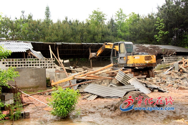 ? ? 當天,該鎮組織鎮、村及各部門70余名干部開展集中聯合執法行動,出動多臺挖機對多處養殖場進行徹底拆除,共拆除7個違規搭建豬圈近3000平方米。?
