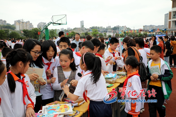 ? ? 最激動人心的是“好書漂流”活動。操場上擺滿了“小攤”,上面擺滿了琳瑯滿目的書籍,讓人應(yīng)接不暇。歡笑聲,交流聲,現(xiàn)場人頭攢動,人聲鼎沸,書香彌漫了整個校園。