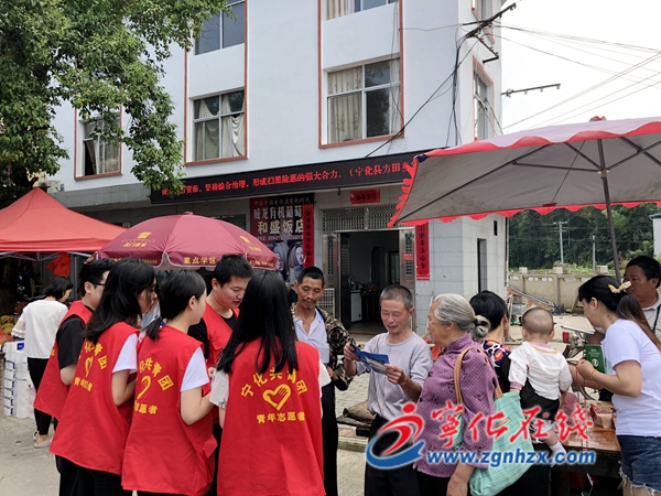 ? ? 5月15日,正逢寧化縣方田鄉(xiāng)圩日,街上人頭攢動(dòng)。方田鄉(xiāng)掃黑辦、紀(jì)委、團(tuán)委、婦聯(lián)、文明辦等部門聯(lián)合開(kāi)展掃黑除惡專項(xiàng)斗爭(zhēng)宣傳活動(dòng)。