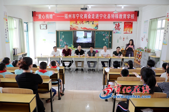 ??? 福州寧化商會向寧化特校捐贈愛心款2萬元,希望同學們好好學習,學會生存,學會生活,更好地融入社會。縣特殊教育學校向福州寧化商會敬贈題有“支教助殘,弘揚善德”字樣的牌匾,對商會的善舉表示感謝。