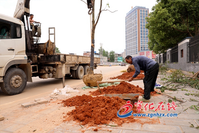??? 5月15日,在寧化城區江下路段,縣城市建設公司正組織工作人員對缺株的行道樹進行補種。據現場施工負責人介紹,此次計劃在城區東大路、中環路等多個城市道路節點,補種170余株行道樹,樹種主要包括香樟、廣玉蘭、桂花等,預計在五月底完工。(范日樑 張隆鑫 吳承揚 )
