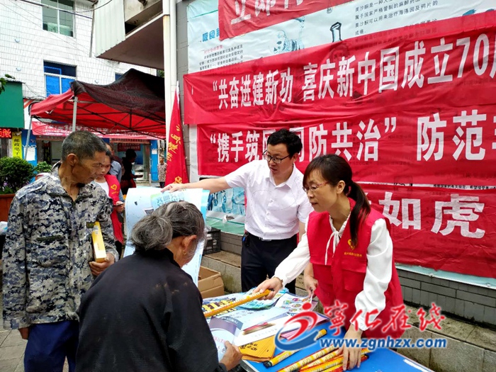 ? ? 5月28日上午,由寧化縣湖村鎮(zhèn)綜治辦、計生協(xié)會、團委、司法所、衛(wèi)生院等多個部門聯(lián)合組成的新時代文明實踐志愿服務(wù)隊,在集鎮(zhèn)八角亭開展“共奮進建新功,喜慶新中國成立70周年”主題宣傳活動。