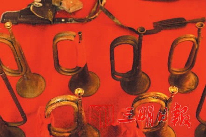 寧化縣泉上鎮東方軍指揮部舊址陳列室里展示的舊軍號。(本報記者 林文斌 攝)