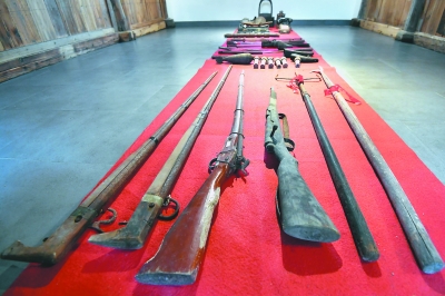 紀念館內陳列著紅軍長征時期使用的兵器、生活用具等