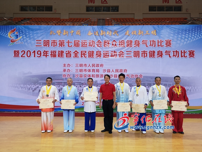 ? ? 7月20日至21日,三明市第七屆運動會群眾組健身氣功比賽暨2019年福建省全民健身運動會三明市健身氣功比賽在市體育館舉行。來自該市8個代表隊48名運動員參賽,其中,寧化縣代表隊喜獲集體賽三等獎、個人賽1金1銀6銅的好成績。