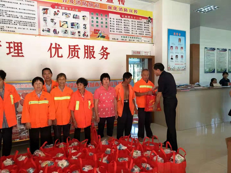慰問組為二環工人送上了綠豆、牛奶、正氣水、仁丹、清涼油等防暑降溫用品,仔細詢問了近段高溫天氣下二環工人的工作情況和身體狀況,對他們不畏炎熱酷暑,兢兢業業辛勤勞動,給城市帶來整潔表示感謝。同時反復叮囑二環工人一定要照顧好自己的身體,切實做好防暑降溫工作。