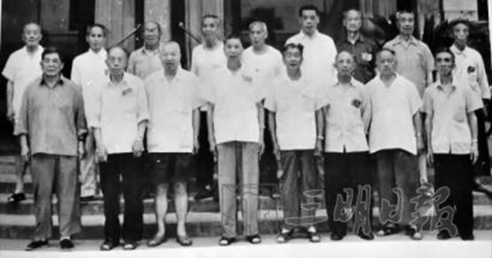 1985年,蘭發連(后排右一)回寧化座談并與紅軍戰友合影。