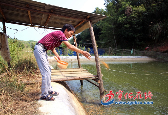 ? ? 9月12日,寧化縣湖村鎮諶坑村泥鰍養殖基地里,10余畝池塘波光粼粼,基地負責人徐云亮往池塘中撒著飼料,一大群泥鰍競相搶食,好不熱鬧。