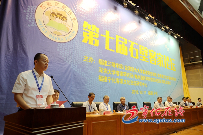 ? ? 開幕式過后,三明學院客家文化研究所副所長靳陽春主持主旨演講。臺灣聯合大學客家研究學院、苗栗學研究中心研究員兼主任、博士劉煥云,北京大學歷史系教授、博導、客家歷史與文化研究所所長郭華榕,福建社會科學院研究員楊彥杰,三明學院教授、三明學院客家文化研究所所長蔡登秋,深圳大學文化產業研究院博士、副研究員王梁宇,寧化師范附屬小學特級教師、縣客家研究會理事賴承棟等專家學者先后上臺,從發揮石壁客家祖地優勢推動兩岸融合發展、石壁客家文化研究、客家文化產業創新發展、傳承客家精神等角度進行闡述,進一步弘揚優秀客家文化,助推新時代寧化高質量發展。