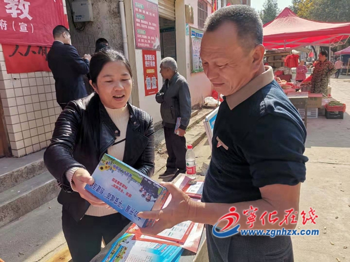 11月14日,寧化城郊鎮下巫坊圩日,鎮掃黑辦組織工作人員來到下巫坊,走進熱鬧的圩場,開展綜治平安法制建設宣傳活動。