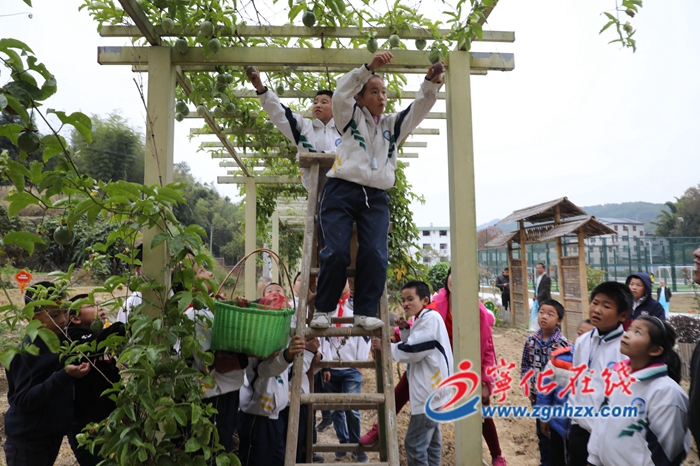 在老師的有序組織下,學生紛紛走進“開心農場”,采百香果、挖紅薯、下池抓魚,烤地瓜,品嘗百香果,共同體驗勞動和豐收的快樂。